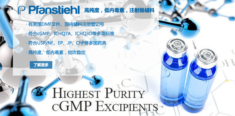 “熱烈祝賀Pfanstiehl的注射級甘氨酸Glycine(G-140)喜獲CDE登記號F20250000403, 這是Pfanstiehl產品獲得的第18個CDE登記號!”甘氨酸在醫藥輔料制劑中應用廣泛,, 可作為緩沖劑,增溶劑,穩定劑等,具有諸多優勢。Pfanstiehl秉承一貫高品質理念,為滿足全球生物制藥行業對于高品質甘氨酸的需求,隆重推出的注射級甘氨酸Glycine (G-140), 具有超高純度,超低內毒素,超低金屬殘留的特點,單獨檢測29種金屬離子,并且新增DNA,RNA,DNA酶,RNA酶和脂肪酶,亞硝酸鹽等多項質量指標的檢測,符合多國藥典規定(USP, EP, BP, JPE, ChP),可用于生物治療性藥物和疫苗的生產。產品信息:· 產品名稱:Glycine, High Purity, Low Endotoxin, Low Metals, USP, EP, BP, JPE, ChP (G-140)· 中文名稱:甘氨酸· 分子式:C2H5NO2· 分子量:75.07 g / mol· CAS號:56-40-6· 產品貨號:G-140產品特點: · 超高純度,超低內毒素,超低微生物含量,超低金屬雜質殘留· 質量指標新增DNA,RNA,DNA酶,RNA酶,脂肪酶和亞硝酸鹽檢測· 符合多國藥典:USP, EP, BP, JPE, ChP· 符合ICH Q3D標準· 符合GMP標準· 已獲DMF和CDE登記號 產品應用:· 緩沖劑· 穩定劑· 增溶劑如果您對Pfanstiehl注射級別Glycine G-140感興趣,歡迎聯系Pfanstiehl 中國區代理商北京西美杰科技有限公司獲得如下詳細的產品概況說明文件和測試樣品。Pfanstiehl Inc.最新產品系列如下,歡迎聯系北京西美杰科技有限公司獲取100g裝免費樣品。北京西美杰科技有限公司為Pfanstiehl中國代理,為客戶提供完善的技術支持與售后服務。歡迎撥打西美杰客服電話400-050-4006或者登陸網站www_xmjsci_com.jshtsyj.com了解更多信息。 更多>
